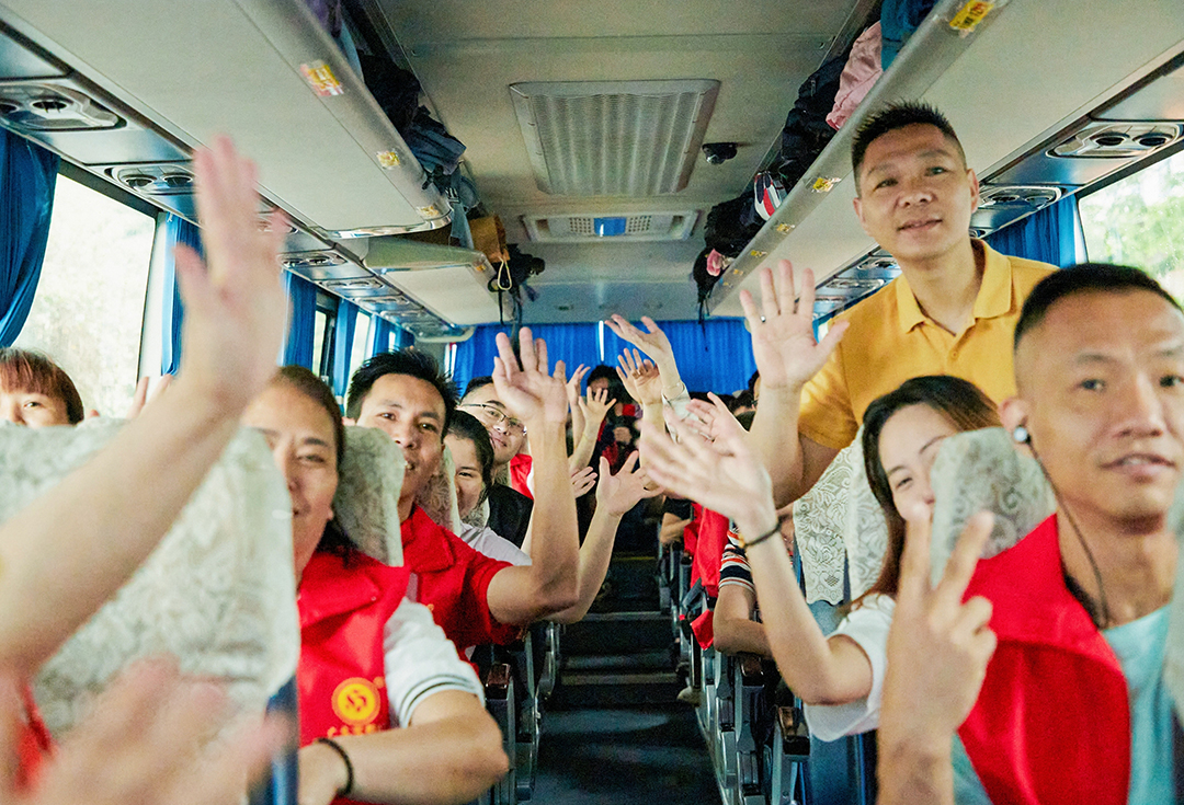 早上,在前往下川岛团建活动的巴士上,一幅欢快的景象展现在眼前